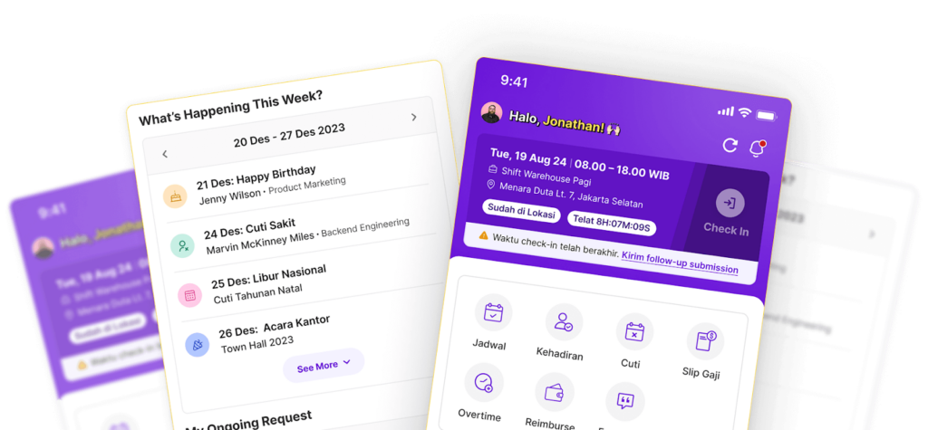 - Manajemen Data Terpusat: Data absensi, payroll, dan riwayat kerja terpusat dalam satu dashboard berbasis cloud.