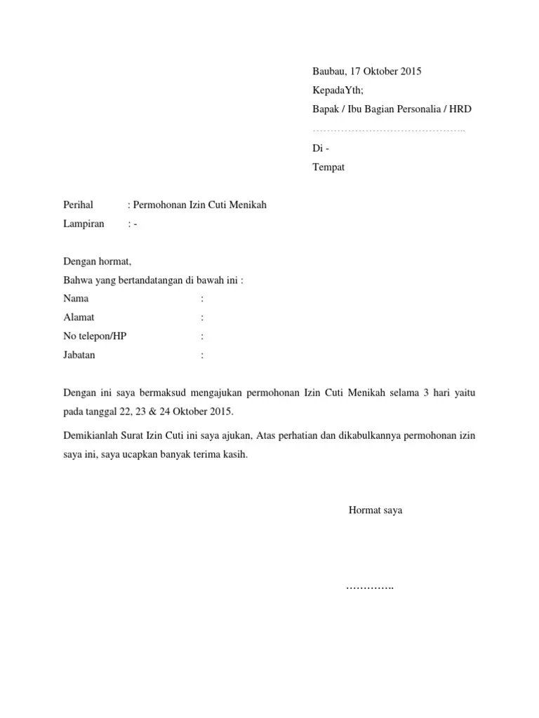 Contoh Surat Cuti Menikah | Sumber: Scribd