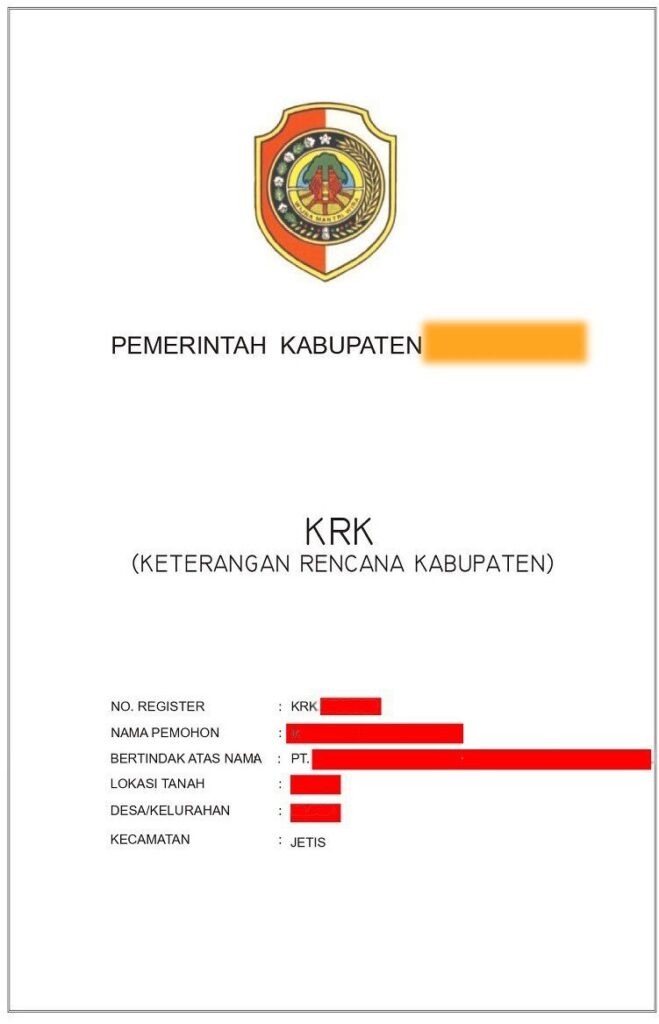 4. Sertifikat Lokasi atau Keterangan Rencana Kota (KRK)