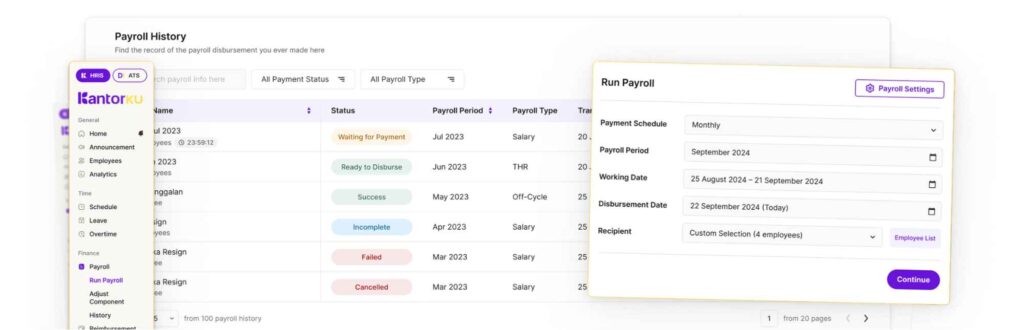 Untuk itu, agar pengelolaan gaji lebih efisien dan tepat waktu, Anda dapat menggunakan KantorKu HRIS.
