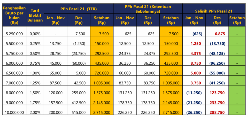 Untuk penghasilan Rp10 juta maka TER = 2%.