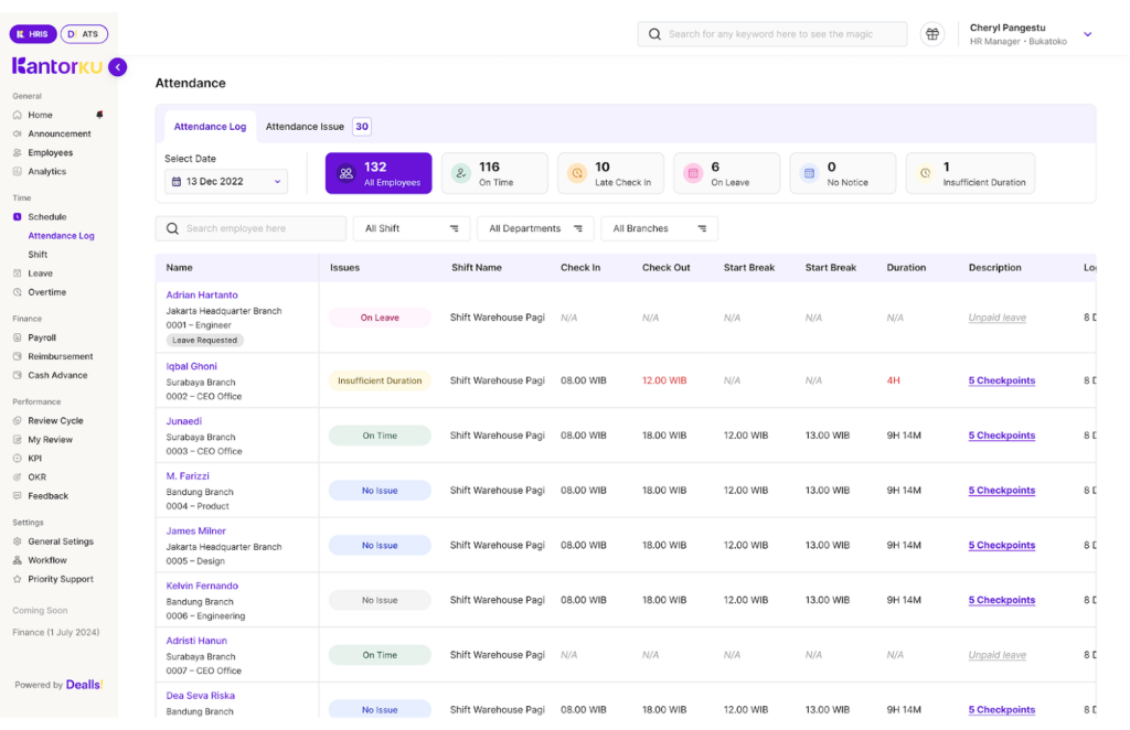 - Analytics: Pantau statistik kehadiran, lembur, hingga biaya payroll melalui dasbor yang intuitif.