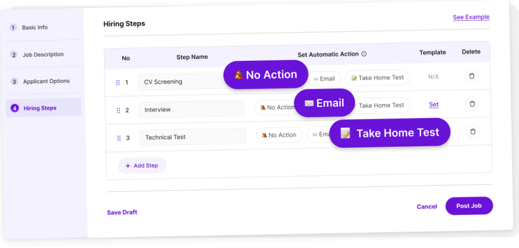 - Pembuatan alur kerja rekrutmen yang dapat dikustomisasi sepenuhnya.