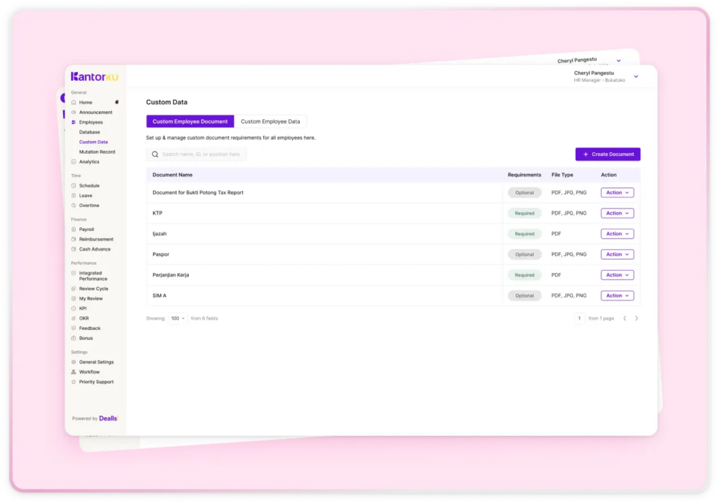 Cegah lagi data karyawan yang tercecer! Atasi masalah administrasi dengan beralih ke aplikasi database karyawan. Book demo gratis sekarang untuk mulai menyimpan data karyawan Anda secara digital di satu tempat yang terpusat!