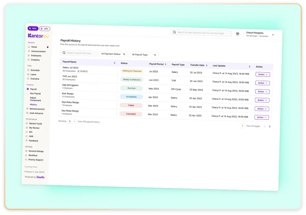 Dashboard Payroll KantorKu HRIS