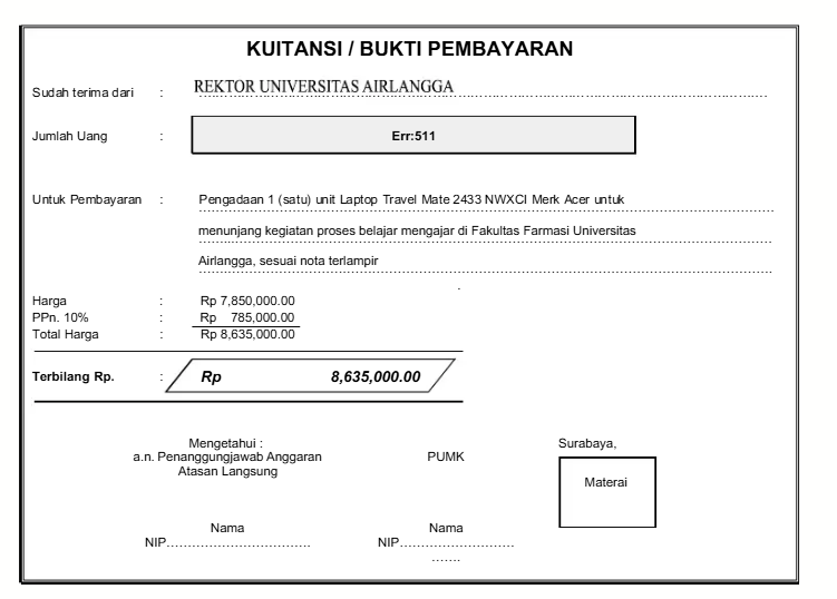 Berikut unsur-unsur dalam kwitansi pembayaran: