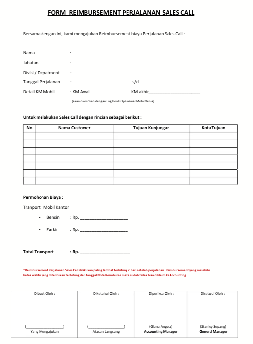 Dokumen ini biasanya dipakai bersama kwitansi asli untuk keperluan verifikasi dan reimbursement.