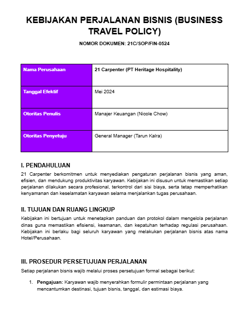 - Contoh Kebijakan (Policy) Perjalanan Bisnis yang Ideal