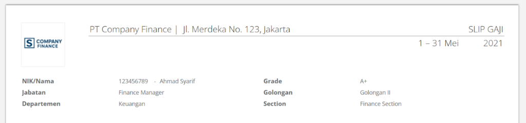 Contoh Identitas Karyawan dan Perusahaan di Slip Gaji