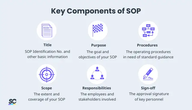 Anda tidak bisa sembarangan membuat SOP, karena harus disusun dengan struktur yang jelas. SOP meliputi apa saja? Berikut beberapa komponen yang harus ada dalam SOP:
