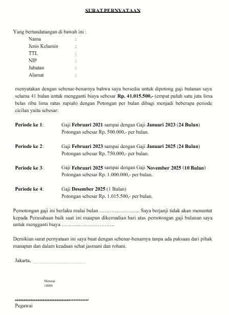 3. Buat Surat Pernyataan Pemotongan Gaji
